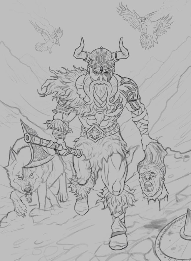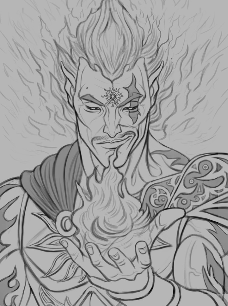 .................... Next up I started a new sketch, something of a cross between the God of the Sun and the God of Fire. Portraits are comfort food for me and I haven't done one in a bit, so I'm excited to get started on this one. Before I begin working on some color tests, I'd greatly appreciate any feedback on the sketch as I want to make sure it's OK before dedicating color to it, so please let me know!