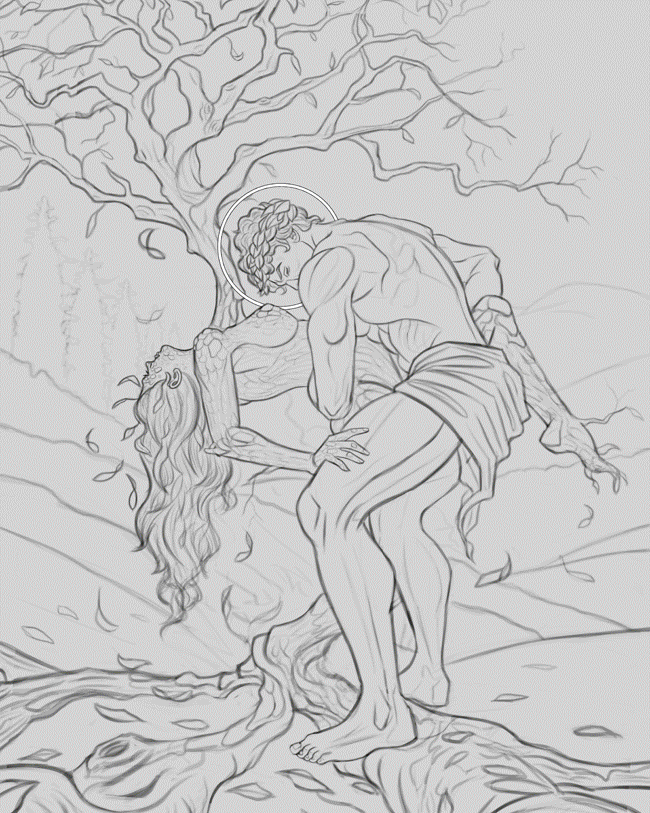 ...............Next I finished up a sketch depicting 'Apollo and Daphne' from Greek Mythology. The figures were referenced from Satine Zillah's awesome reference photography. I'm trying to go with a classical feel for this one, hopefully I can pull it off! Any feedback before I begin work on some color tests would be appreciated as always!