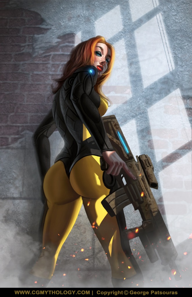 I went with C and continued to paint it in. Having a lot of fun with this one. The lighting on the figure was fairly challenging but I feel it works quite well. I had the shadows on the skin a bit too dark initially but I feel I've corrected that. Still has some ways to go, any input at this stage would be appreciated as always.