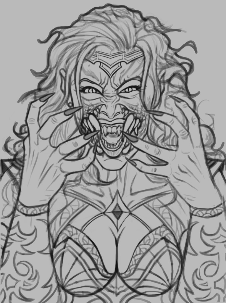 And one more final update! Here is a sketch of 'Mileena' from the Mortal Kombat series. I did this one to see how much I improved from a similar illustration I completed over a decade ago (I'll post it once this new image is finalized and compare the two). I spent a lot of time with the expression as I wanted something really creepy here so hopefully I pulled that off. Any feedback before I begin work on some color tests would be greatly appreciated!