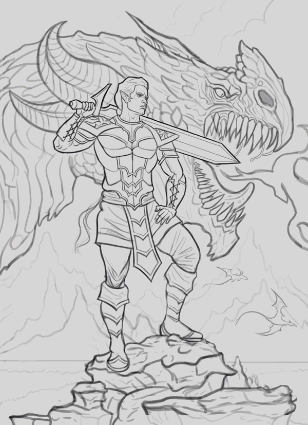 ................. Next up I started on a new personal piece, very much inspired by the artwork of Magic The Gathering so I wanted to achieve a similar feel with this piece. The figure's was referenced from Grafit Studio as well. Any feedback on the sketch before proceeding with some color tests would be most appreciated!