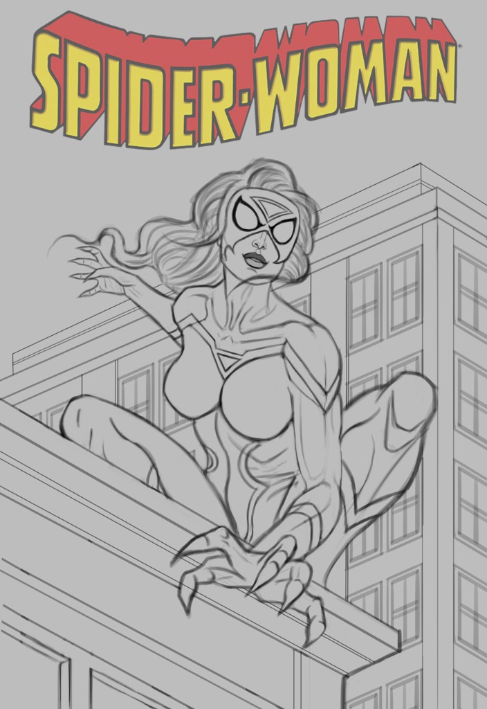 Next up is a fan art of Spider-Woman. For the pose I referenced one of Satine Zillah's reference packs, and am quite happy with it. I'm pretty pleased with the sketch overall, but I'd like to hear any input on if something is off before I begin painting, so please let me know! Here is the sketch: