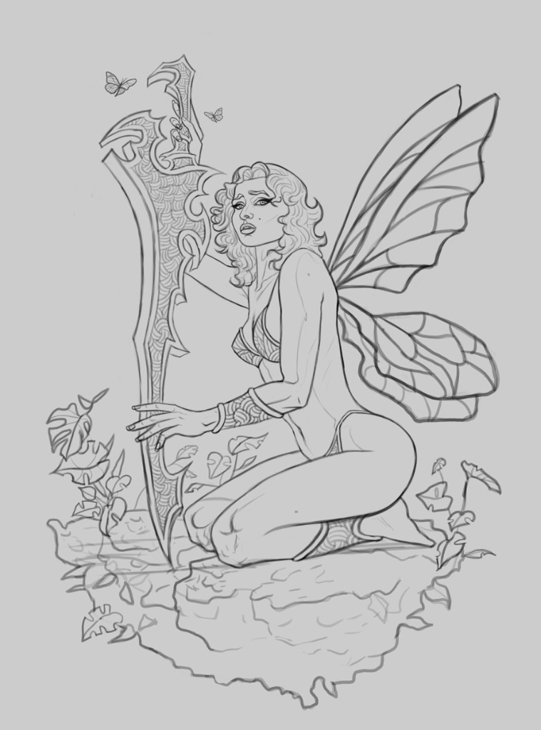 The faerie turned out well, and reminds me of old timey pin-ups with those soft locks on her head
