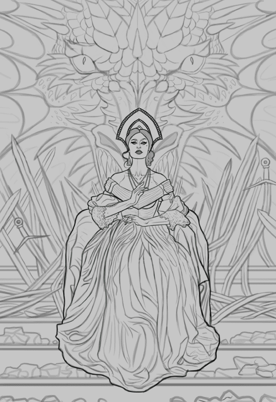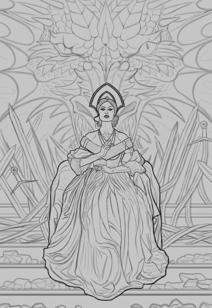 Next up is a sketch I started a while ago. The figure was referenced from Grafit I believe, wanted to challenge myself drawing and painting complex folds. Trying to achieve a 'Game of Thrones' look with this one, and I feel I was quite successful in that regard. Any feedback on the sketch before I begin work on the color tests would be most appreciated!