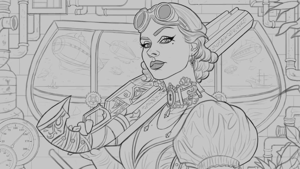 And finally I began work on a new illustration. The theme for this one is steampunk, and I wanted a landscape look for this one as I want to emphasize the environment a bit and I might also offer this as a wallpaper, we shall see. Below is the current sketch, any feedback on it would be most appreciated as I want to get it 100% right before begin work with colors: