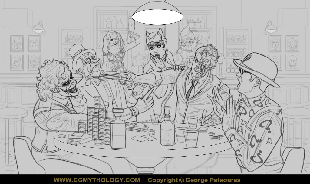 I also started work on a new image. Initially this was going to be a simple photo study, but I decided to do something more creative and went for a depiction of villains from the 'Batman' series, and I think it worked quite well. This image is quite complex as I spent quite some time on the sketch alone, but I'm very happy with it and look forward to begin painting it shortly. Before I begin however any feedback would be appreciated, so if something looks off or can be improved, please feel free to let me know! Below is the sketch followed by the reference: