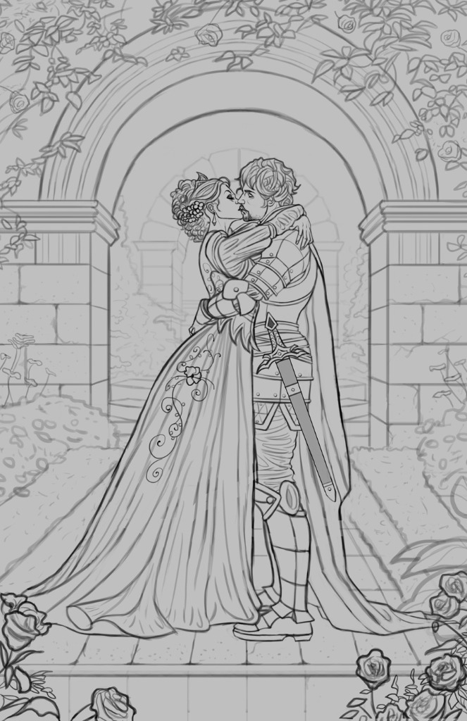 Finally I finished up a sketch for a new personal illustration. This one took me a while due to its complexity but I'm fairly satisfied with it. Before I begin painting it in I want to make sure the sketch is solid, so if something looks off please let me know. The poses were referenced from this stock photo here . Tried my best to stay close to the general poses while creating some medieval themed attire for the couple which fits the theme I'm going for: