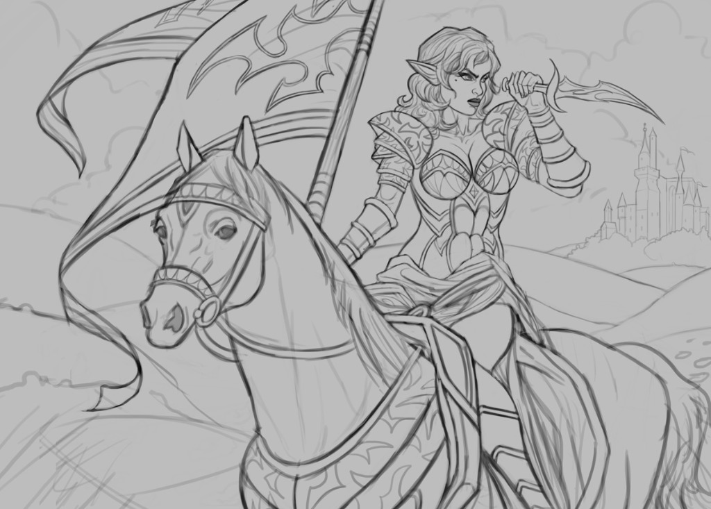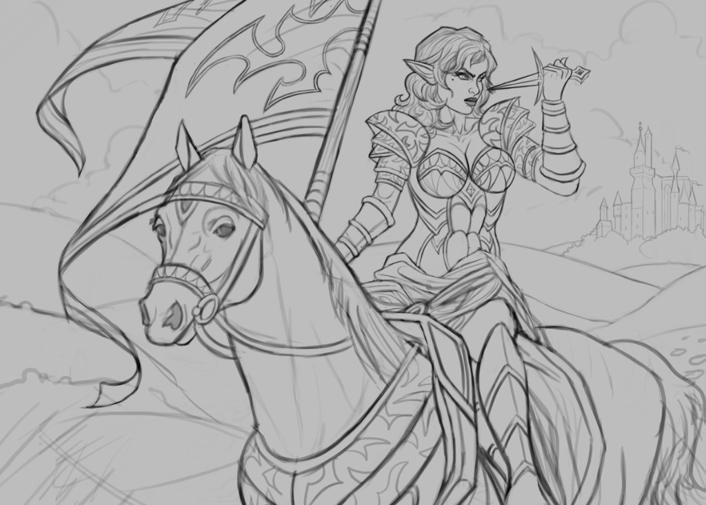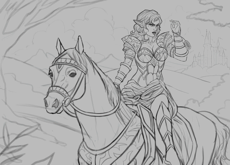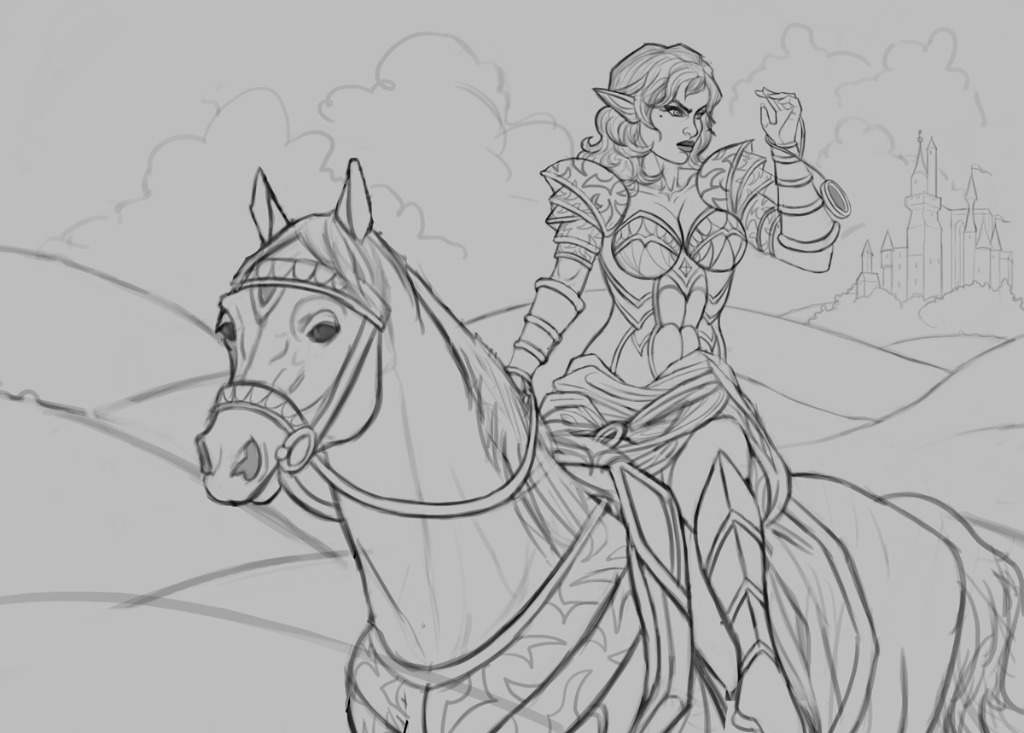 Next up I started on a new sketch, wanted to paint a figure riding a horse again, although at the same time significantly different than the recent illustration I tackled. I had a reference for the general poses, although in the reference the figure's leg was covered up by drapery so I drew that form imagination, hopefully it looks natural enough but please let me know if you feel otherwise. Overall I'm pretty satisfied with the sketch, but I would love to hear any input on it before I begin painting, so please feel free to let me know if anything can be improved. Here is the current sketch: