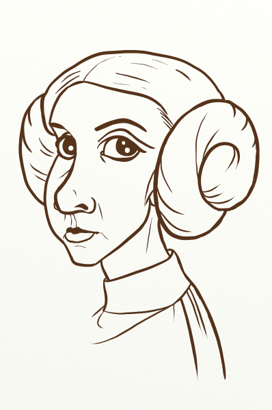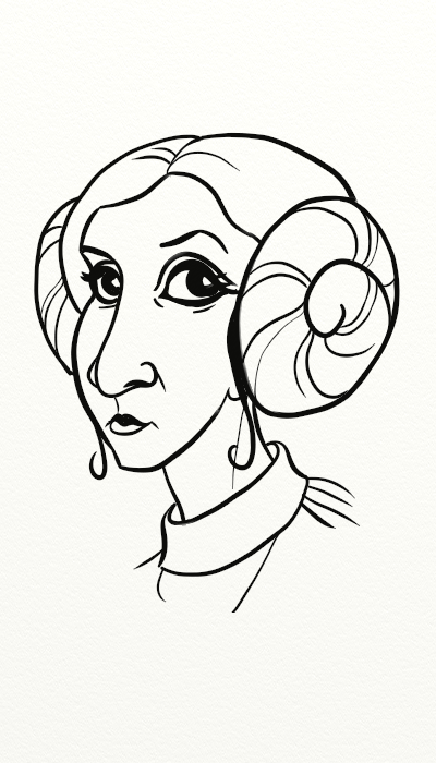 I tried to google Leia caricatures to see how others did her face, but either google isn't very reliable (can that be!?) or people don't know what a caricature is. Lots of cartoony or disney princess style Leias out there. And lots of caricatures where the head is mostly realistic, only attached to a tiny body. I might be wrong but I think a caricature should distort the face by making the most "typical" features of a person more pronounced... So they look more like themselves than they do for real, sort of