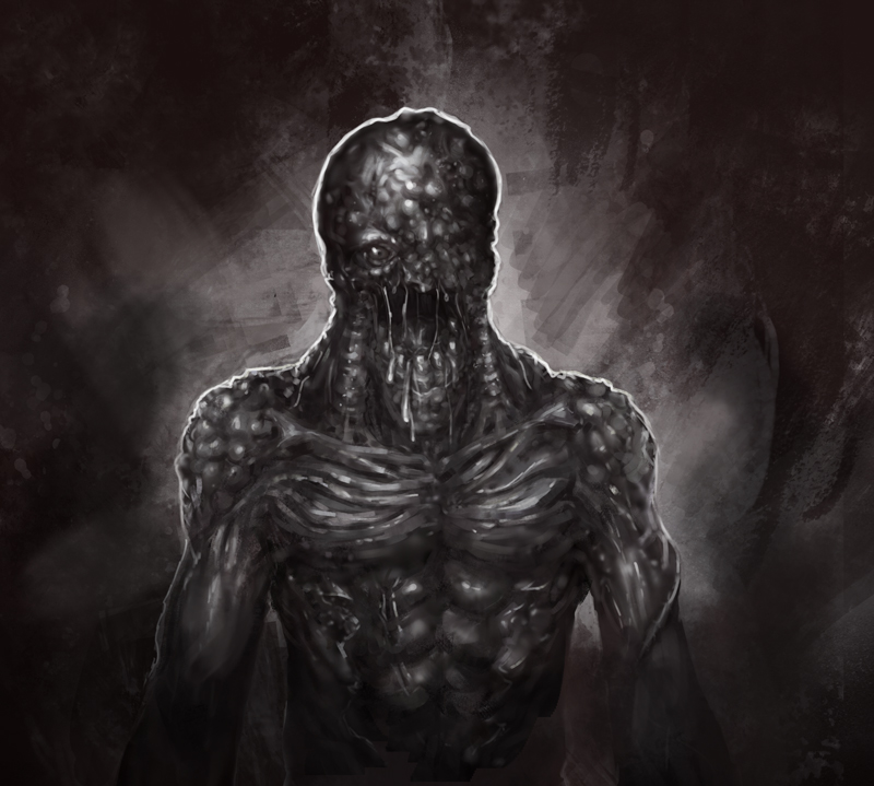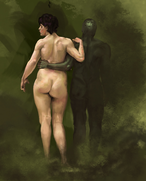 I like that painterly style and the well rendered flesh. It looks like a piece of classical painting with a sinister modern twist.
