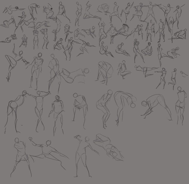 The pose sketches are nice too - very simple yet they perfectly convey what the figure is "doing". (Even if they're not doing much but posing!)