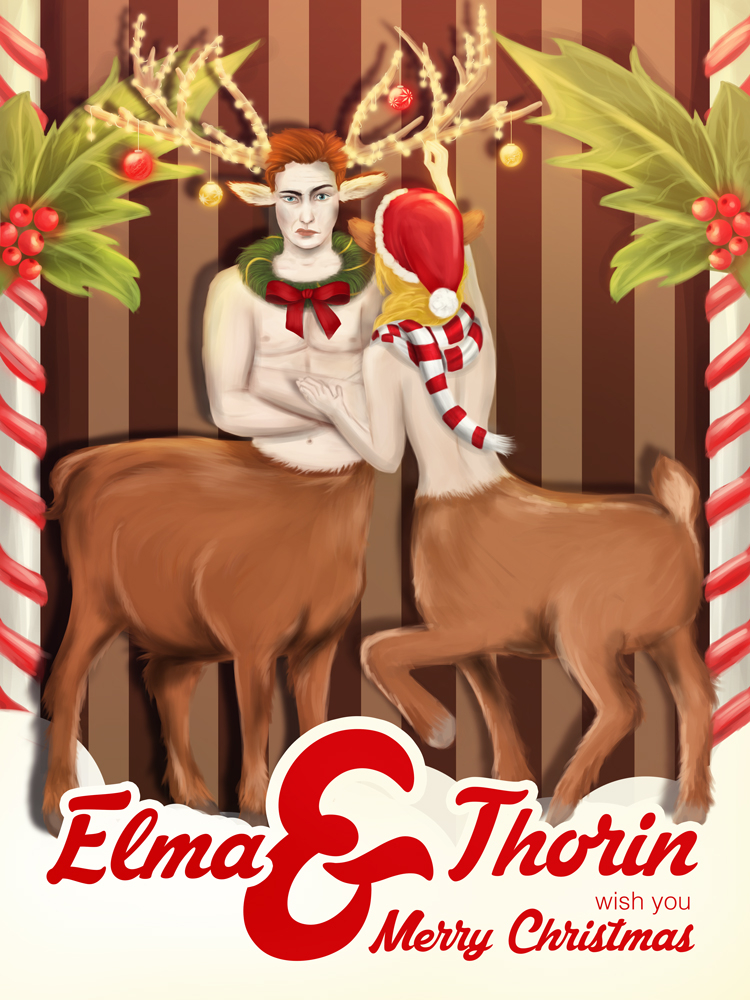 I played around with some ideas and then I came up with the idea for a couple of christmas lover and hater. The male centaur - I called him Thorin - has the poor destiny to be Elma's christmas tree. He seems to be not amused but stands there and waits for the end of this little joke. She really knows that he hates it, bad little girl. ^^ But she really wants to decorate him and so she ignores his grumpy face. She could be me. Just with red hair instead of blonde