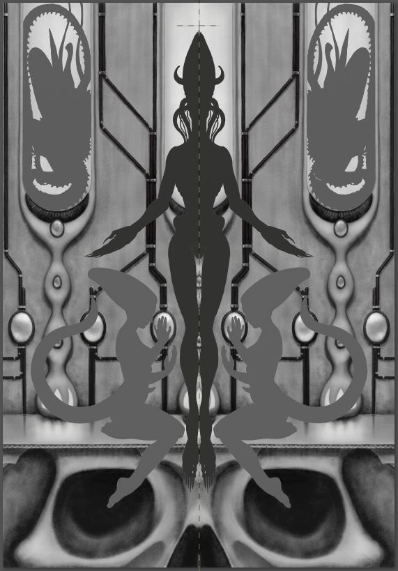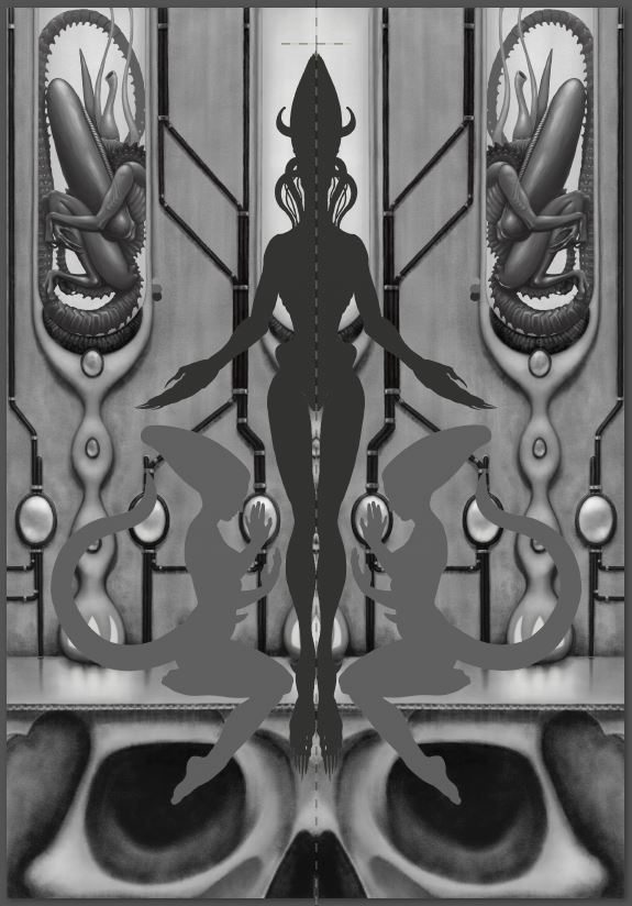The Giger image is very technical and I very much like the symmetry. Plus, I think the texture suits an airbrushed piece. I am looking forward to seeing a bit more with the characters because I am curious how you will balance the depth. Nice work Vol... er I mean Dodo..... er.. I mean.........